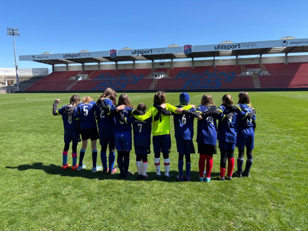 In der mittleren Wettkampfklasse III bereiteten sich die Damen aus 8. bis 5. Klasse eifrig vor. Der Fußballer und Coach unter der Lehrerschaft, Herr Braun, begleitete an einem frischen Aprilmorgen diese Schäftlarnerinnen zum Fußballgelände der SpVgg Unterhaching.