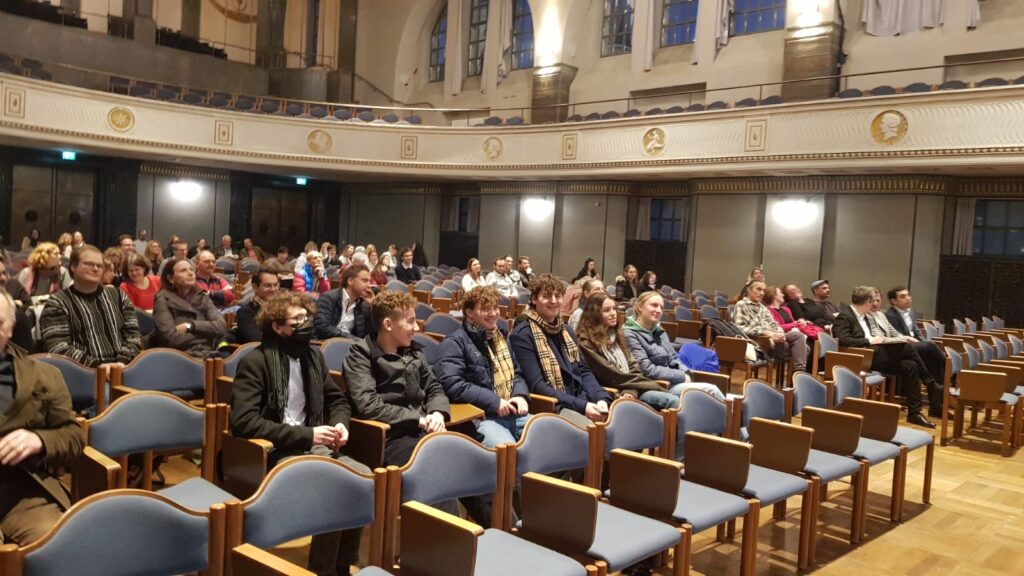 Wir besuchten am 11.12.25 die Fortbildungsveranstaltung Nova Didactica des Lehrstuhls für Alte Sprachen und deren Didaktik an der LMU München und konnten Herrn Dr. Stierstorfers Vortrag über Petrons Satyrica und deren aktuellster Rezeption lauschen, der äußerst aufschlussreich und informativ für das bevorstehende Lateinabitur war. Die Vortragsreihe zum Thema lateinische Oberstufe heute war in einem beeindruckenden und dazu passenden Prunksaal: Darin begrüßten uns riesige Mosaik-Götter in Jugendstilform und Romulus und Remus auf dem Seitendekor. Wir nahmen mit, dass auch in der Gegenwart antike Themen noch von großer Relevanz sind und auch in unserem Alltag eine große Rolle spielen. Manche Neureichen versuchen auch heute noch ihren sozialen Status durch gezielte Selbstinszenierung aufzuwerten. Dies wurde am Beispiel von Elon Musk und den Geißens gezeigt. Beim Kaffeeplausch hatten wir sogar die Möglichkeit, mit prominenten Lateinern wie Prof. Janka und seiner Lateincrew zu sprechen. Dadurch erhielten wir erste Einblicke ins Studium der Alten Sprachen. Es war insgesamt eine sehr lehrreiche und gelungene Exkursion, die nach einer Repititio ruft. Vivat linguam Latinam!