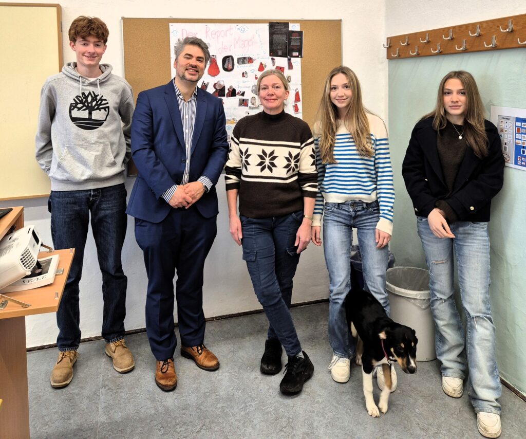 Um der engen Verzahnung zwischen beruflicher Praxis und dem Projektseminar Rechnung zu tragen, war am 11.12.25 die ehemalige Filmautorin und Schüler(innen)mutter Michaela Kürschner-Kloiber zusammen mit ihrem niedlichen Hundewelpen „Bessie“ zu Besuch im P-Seminar Booktubes. Frau Kürschner-Kloiber, die jahrelang auch für den BR drehte, präsentierte dem Projektseminar nicht nur Teile ihrer noch immer aktuellen Dokumentation über Resilienzforschung („Schutzschild für die Seele – Ist Stärke erlernbar?“, online über BR Klassik abrufbar), sondern sie berichtete uns auch Interessantes über ihre aufregenden Drehtage an verschiedensten Orten der Welt. So hat sie z.B. in Indien und dem Libanon unter sehr herausfordernden Bedingungen gedreht. Darüber hinaus gab uns Frau Kürschner-Kloiber ergiebige Einblicke in ihre anspruchsvolle und sehr kreative Arbeitsweise in Bezug auf diverse Filmprojekte. In puncto Symbolbilder und filmische Mittel lernte das P-Seminar viel für dessen eigene Projekte dazu. Vielen Dank dafür!