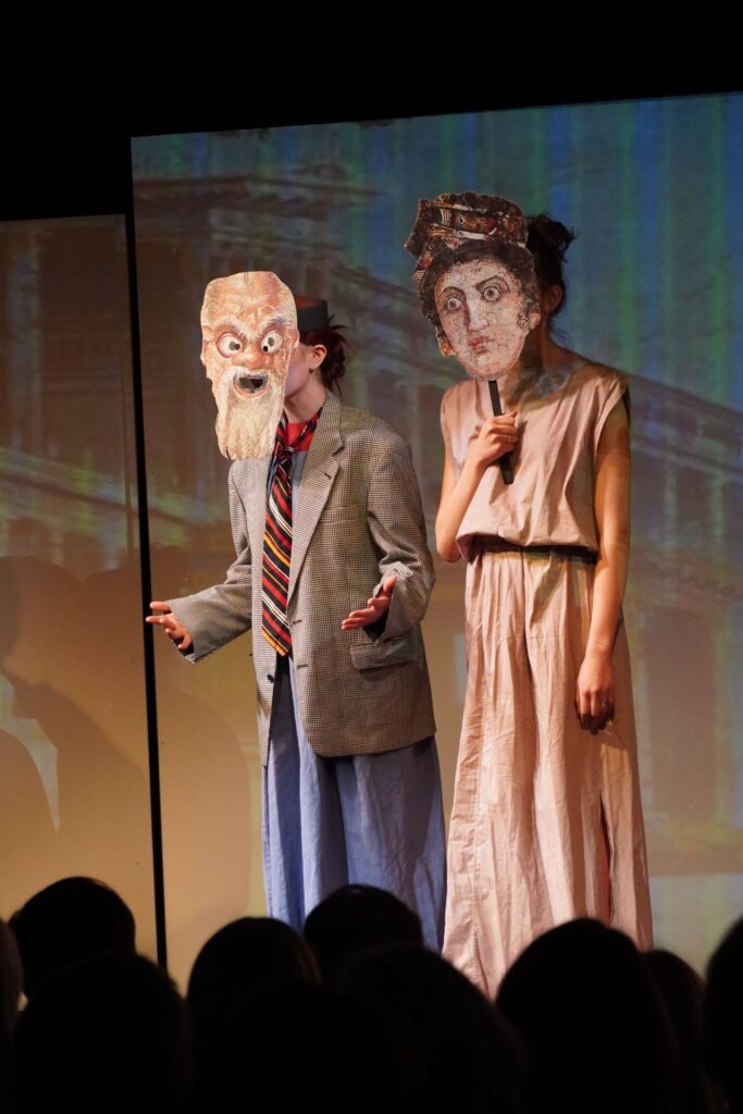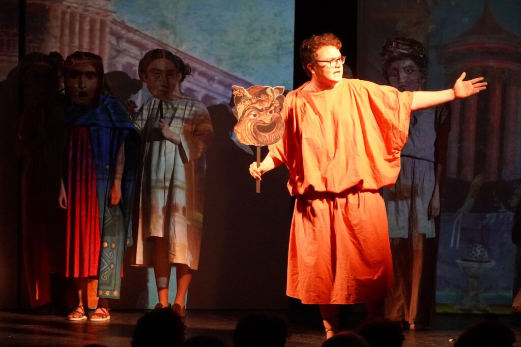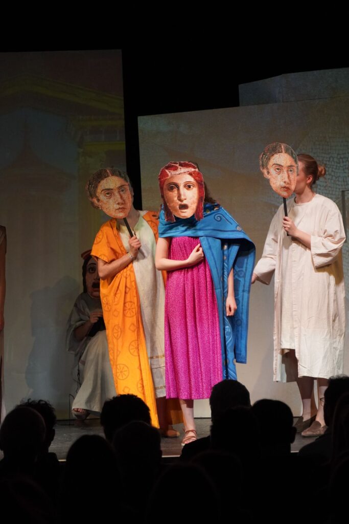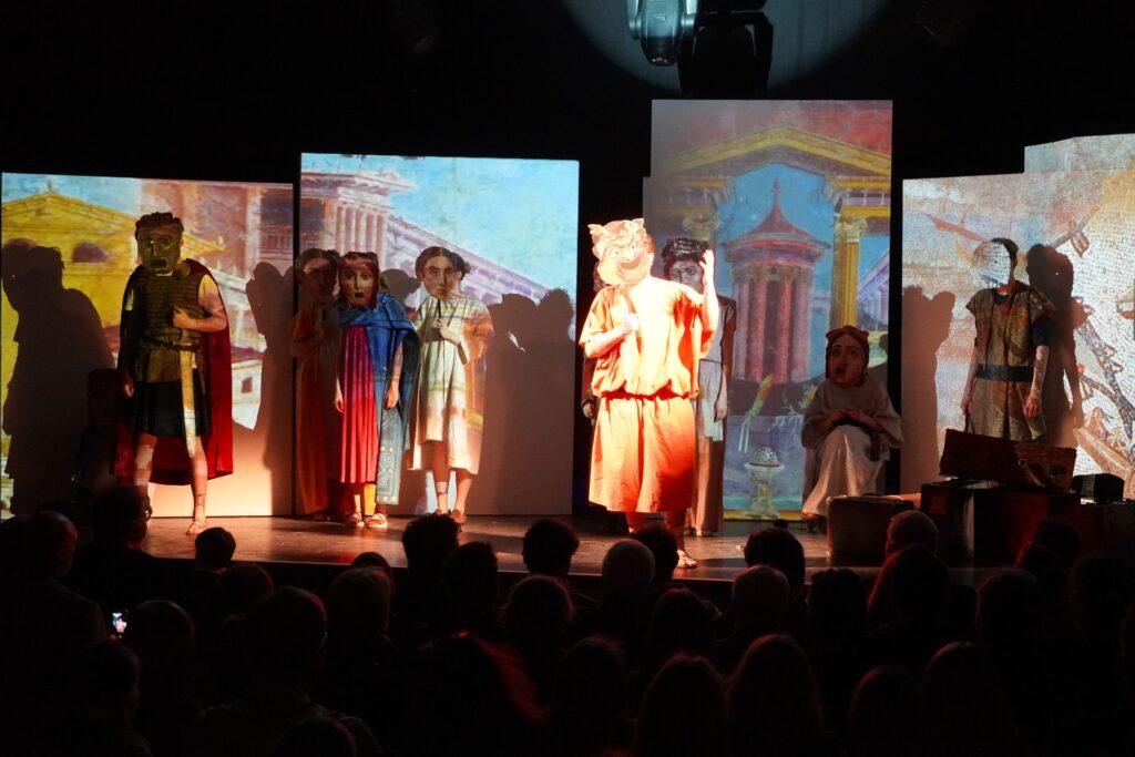 Die Theatergruppe unseres Gymnasiums blickt auf eine erfolgreiche Aufführungsreihe im März zurück: Am 6., 7., 9., 11. und 13. März präsentierten die Schüler/innen ihr diesjähriges Stück „Pompeji“ von Ödön von Horváth und begeisterten dabei ein zahlreiches Publikum.