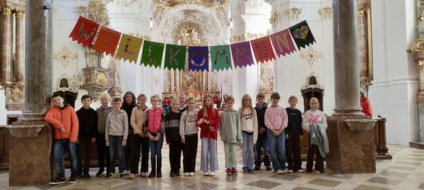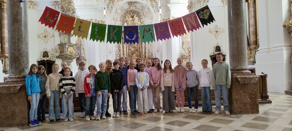 „Ich will euch eine Zukunft und Hoffnung geben“ – unter diesem Leitsatz haben sich Ende September 2024 etwa 200 Schülerinnen und Schüler in Münsterschwarzach getroffen. Unter ihnen auch drei Zehntklässler unseres Gymnasiums, Paul Naumann, Emanuel Klaric und Luis Leibl, die in Begleitung von Herrn Winkler zum Deutschen Benediktinischen Jugendkongress angereist waren. In einem zweijährigen Turnus findet der Austausch zwischen den benediktinisch und zisterziensisch geprägten Schulen im deutschsprachigen Raum statt. In einer "Nacht der Lichter" in der Schulkapelle des Egbert-Gymnasiums wurde gemeinsam gesungen und gebetet.