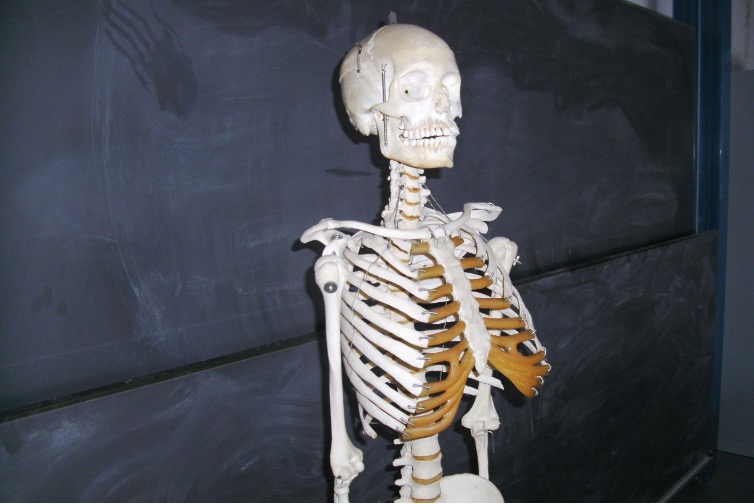 Anhand  eines echten Skeletts kann der Knochenbau des Menschen vom Fünftklässler erlernt werden.