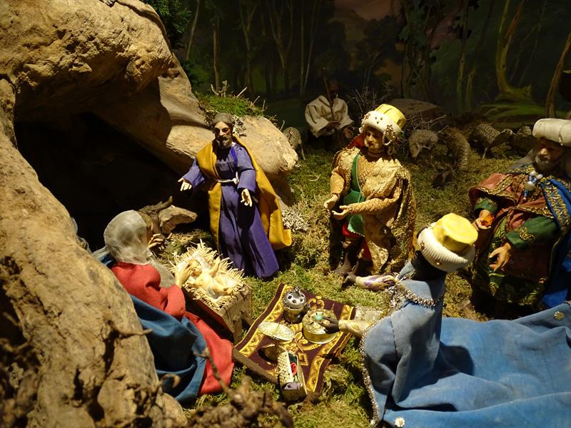 Krippendarstellungen mit den verschiedensten Weihnachtsmotiven: Geburt, Besuch der Hl. Dreikönige, Herbergssuche, aber auch der Kindheit Jesu in Nazareth.