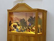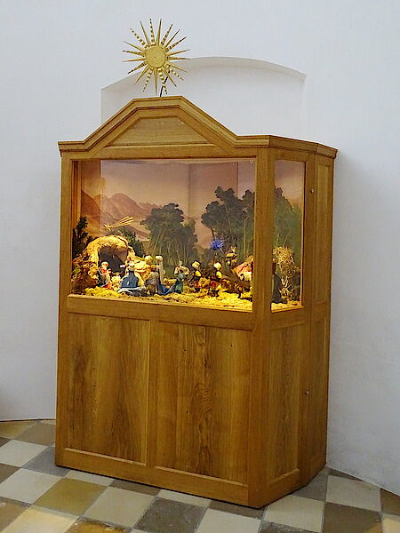 Im Zuge der Kirchenrenovierung wurde der schon stark in die Jahre gekommene Krippenkasten entfernt. Die Klosterschreinerei hat im Jahre 2013 eine neue, sehr schöne und praktische Schrankvitrine für die rechte Eingangskapelle angefertigt.