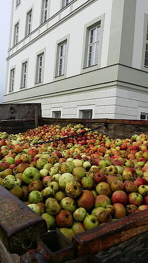 Ende September wurden alle Apfelbäume auf dem Klostergelände abgeerntet. Der Ertrag war sehr ergiebig und wird nun in unserer Brennerei zu Schnaps gebrannt.